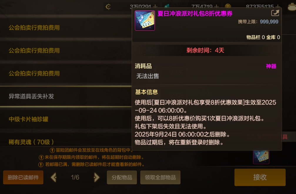 但目前來看這二次補償是無望了,大家也不要抱太大的希望了。但最近有玩家卻是意外收到了這個異常道具丟失的補發獎勵,看到這個補發獎勵大家也都懵了啊,這是什么情況啊。尤其是這補償策劃還是直接發郵件的,這些玩家收到了補償的夏日套八折優惠券。但面對這個補償獎勵大家卻是根本不敢領取的啊,并不說這個補發獎勵的價值太低了,而是領取之后大家損失可就大了啊。