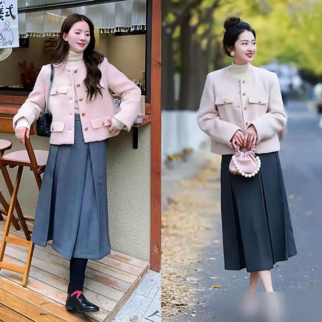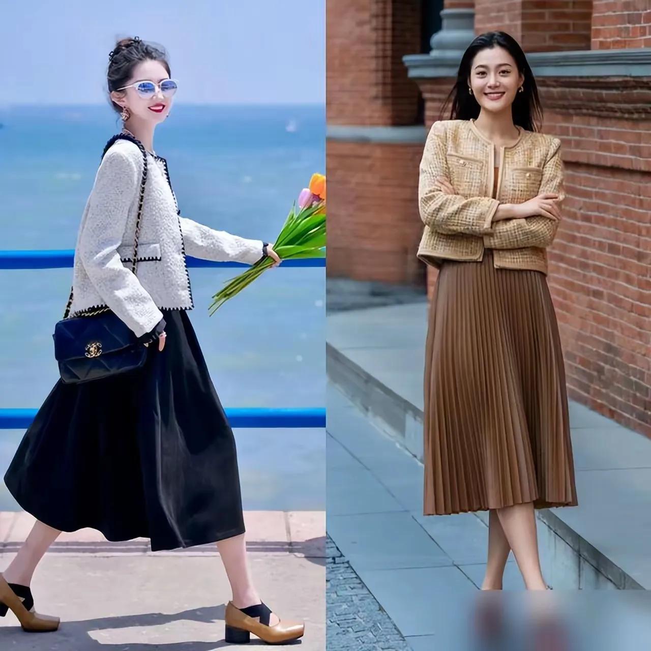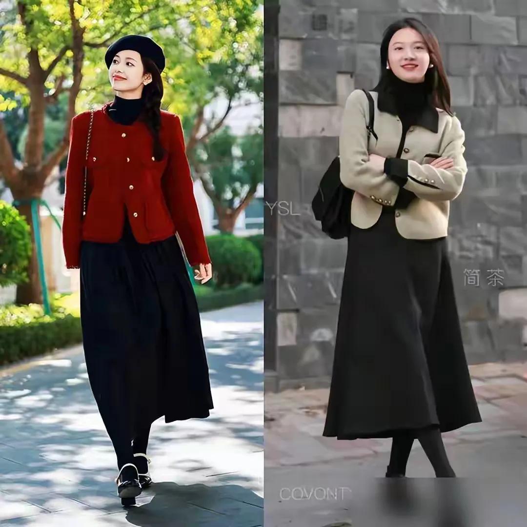 今年小香風外套搭配裙子的穿搭確實很流行,以下是一些能穿出時髦感的搭配方式:
