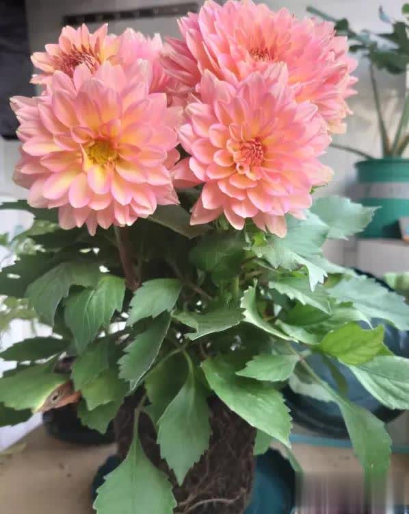 養大麗花,盆越大,長得越旺盛,開花越多,盆越小,長得越弱,開花越少,這是規律,本身就是塊根類花卉,對生長的空間大小,還是有一定要求的,大的空間下,根系更加的發達,長勢也會更猛,北方地區養護,用大的陶盆,冬天開完花以后,也不用往家搬,室外過冬也是可以的,完全不用擔心凍壞。
