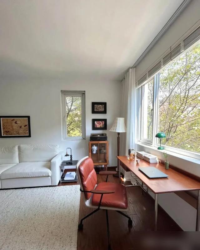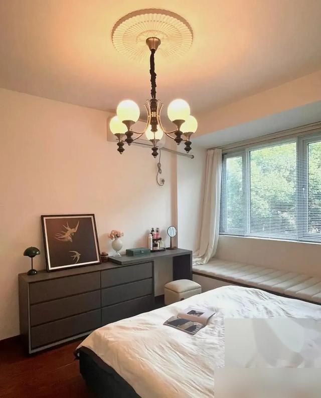 臥室的飄窗墊我也超愛,絨布和地板同色系,像給飄窗蓋了床“剛好合身的被子”,旁邊掛幅手繡小畫,不是名家作品,卻比印刷畫暖一百倍。我家之前飄窗墊選了粉色,和地板反差超大,坐上去總覺得“扎眼”,后來換成淺棕絨布,才發現“同色系”有多香——陽光照進來,絨布泛著暖光,坐上去看書能多翻兩頁,連手機都不想碰。