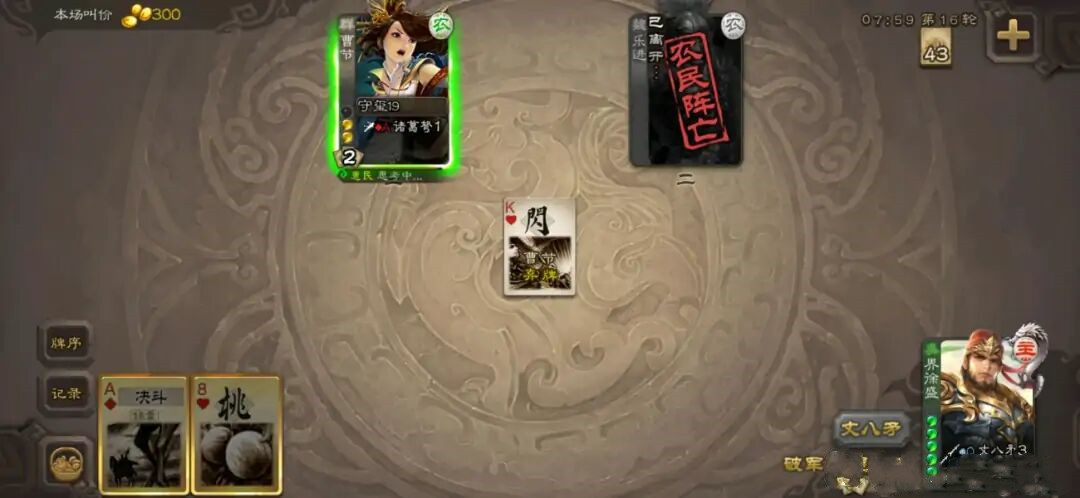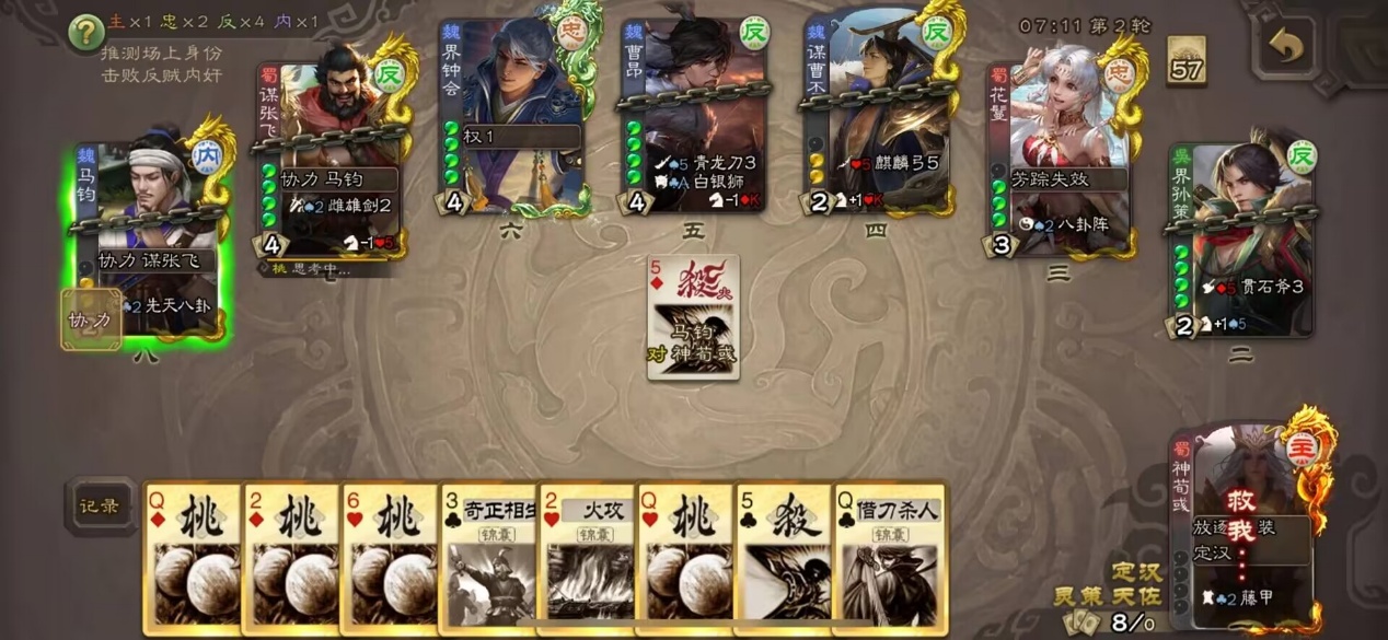 被{放逐}限制,手握4【桃】無法救自己的神荀彧。只能眼睜睜看著自己用不出桃死亡。