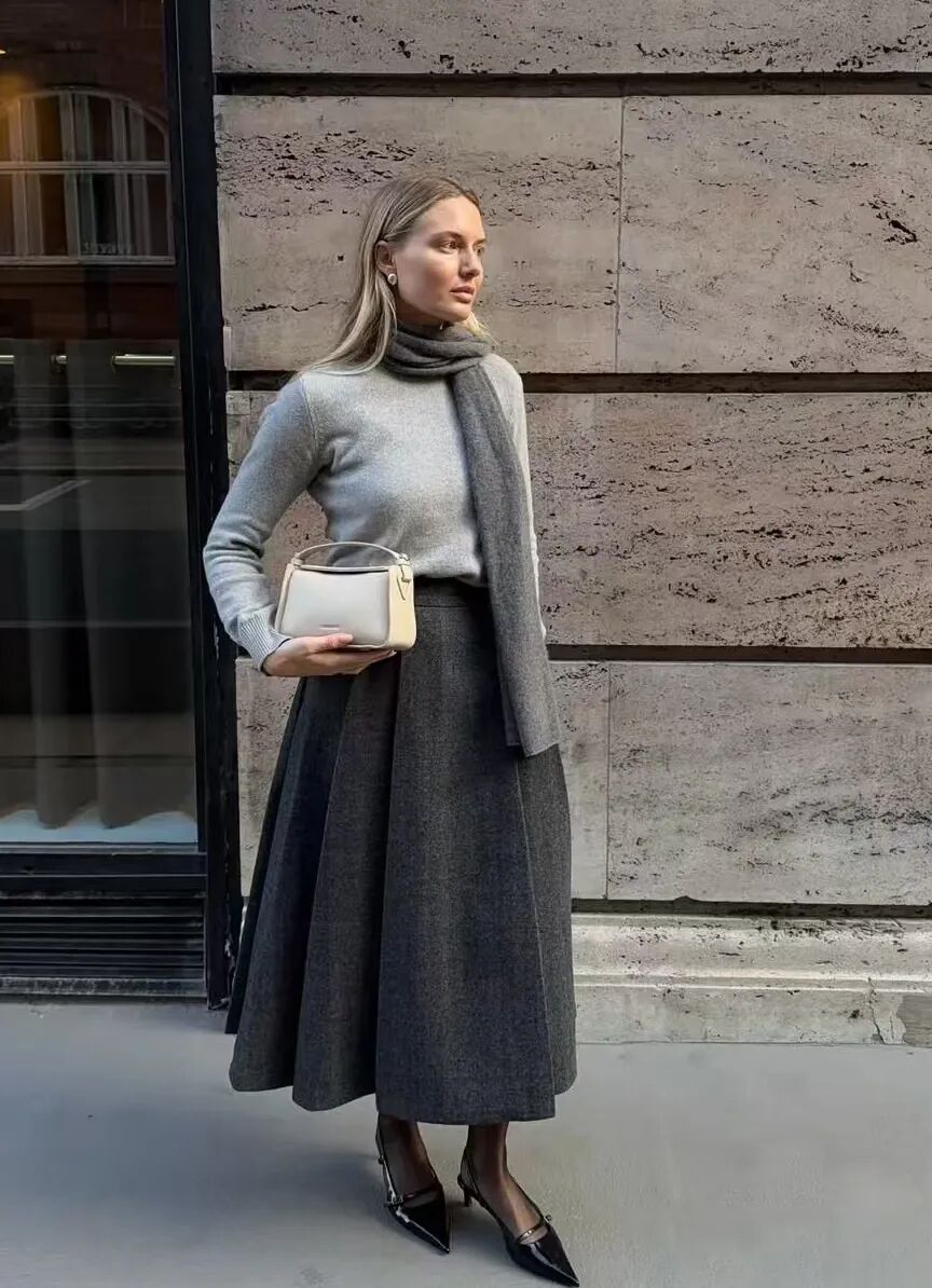 灰色裙子秋日穿搭秘籍,美翻啦!