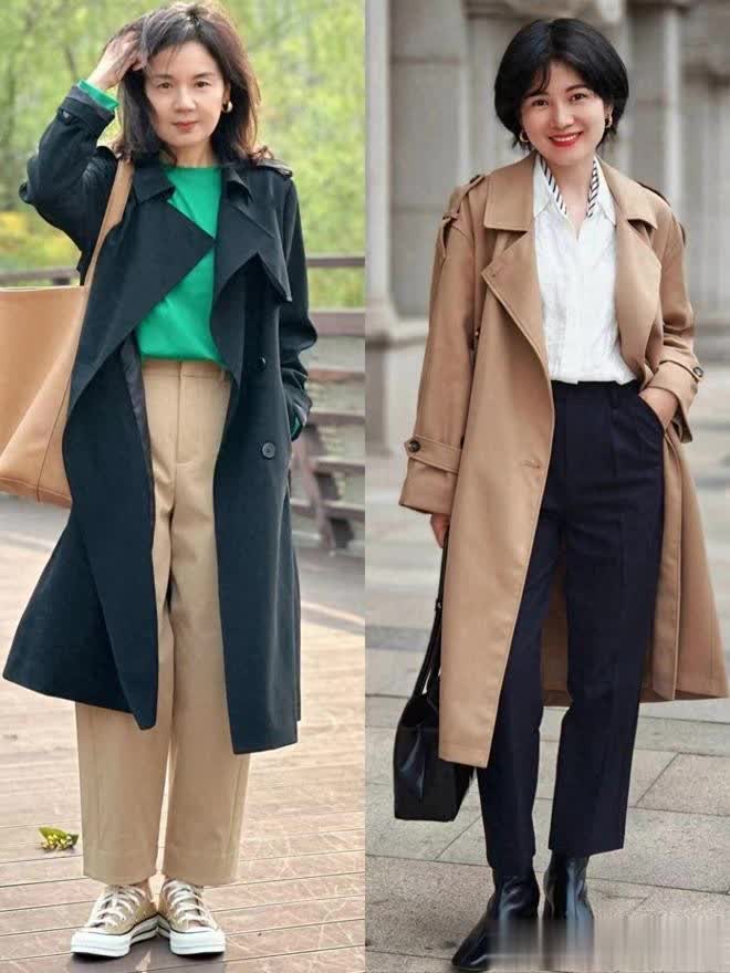 早秋的最佳王者組合當(dāng)屬“風(fēng)衣+九分褲”,尤其是像早晚溫差比較大,我們選擇一件有質(zhì)感的風(fēng)衣和干練利落的九分褲,腳上搭配輕便舒適的鞋子,能讓我們的腳底生風(fēng),完美的凸顯出時髦感和高級感,視覺上會更顯瀟灑和干練,簡直就是中年女性秋季的不二選擇。