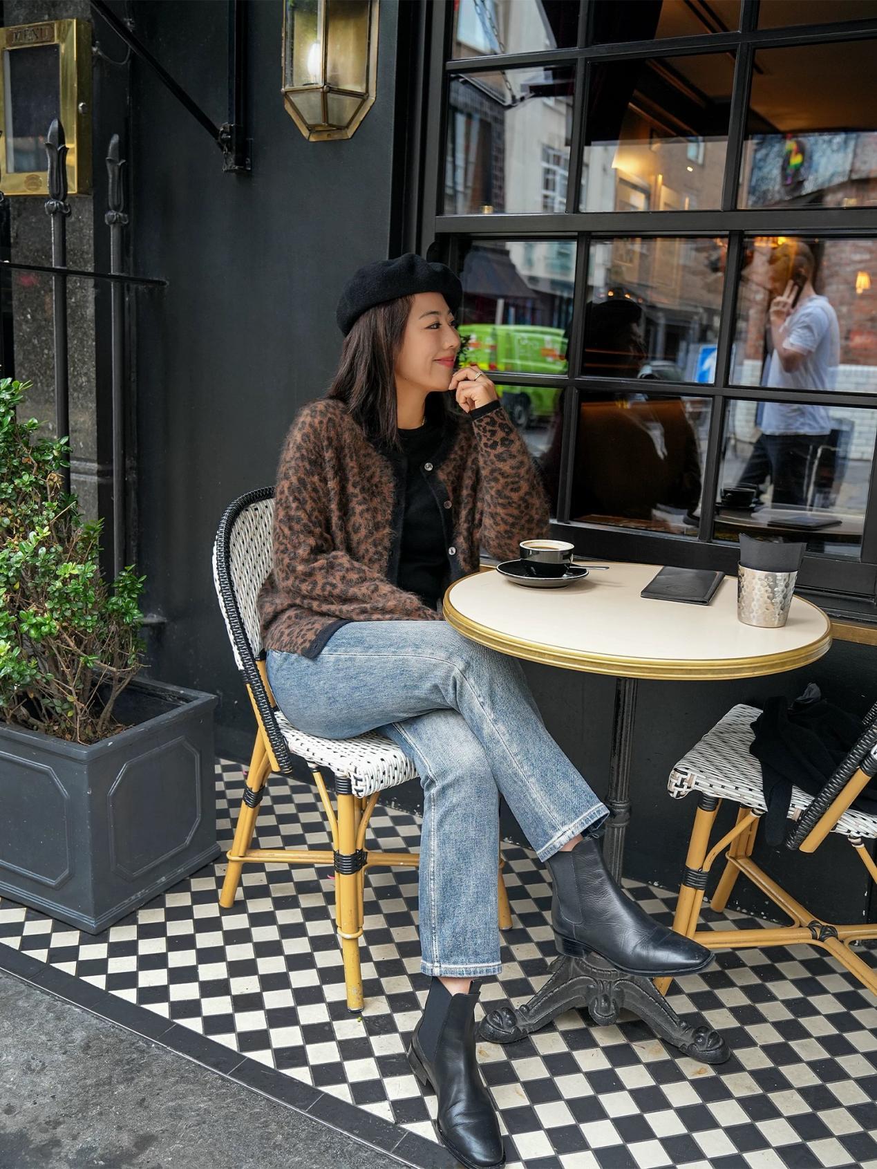 玳瑁元素的羊絨開衫,在秋天穿超有氛圍感,搭配上牛仔煙管褲,配色“深淺分明”,盡顯層次美。
