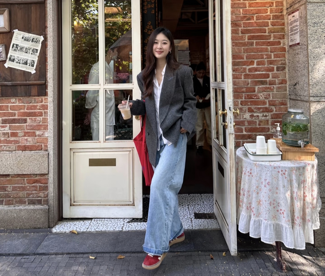 一雙紅色的德訓(xùn)鞋,小面積熱烈的紅色,讓簡單的穿搭變得吸睛,搭配牛仔闊腿褲,輕松打破秋冬沉悶感。