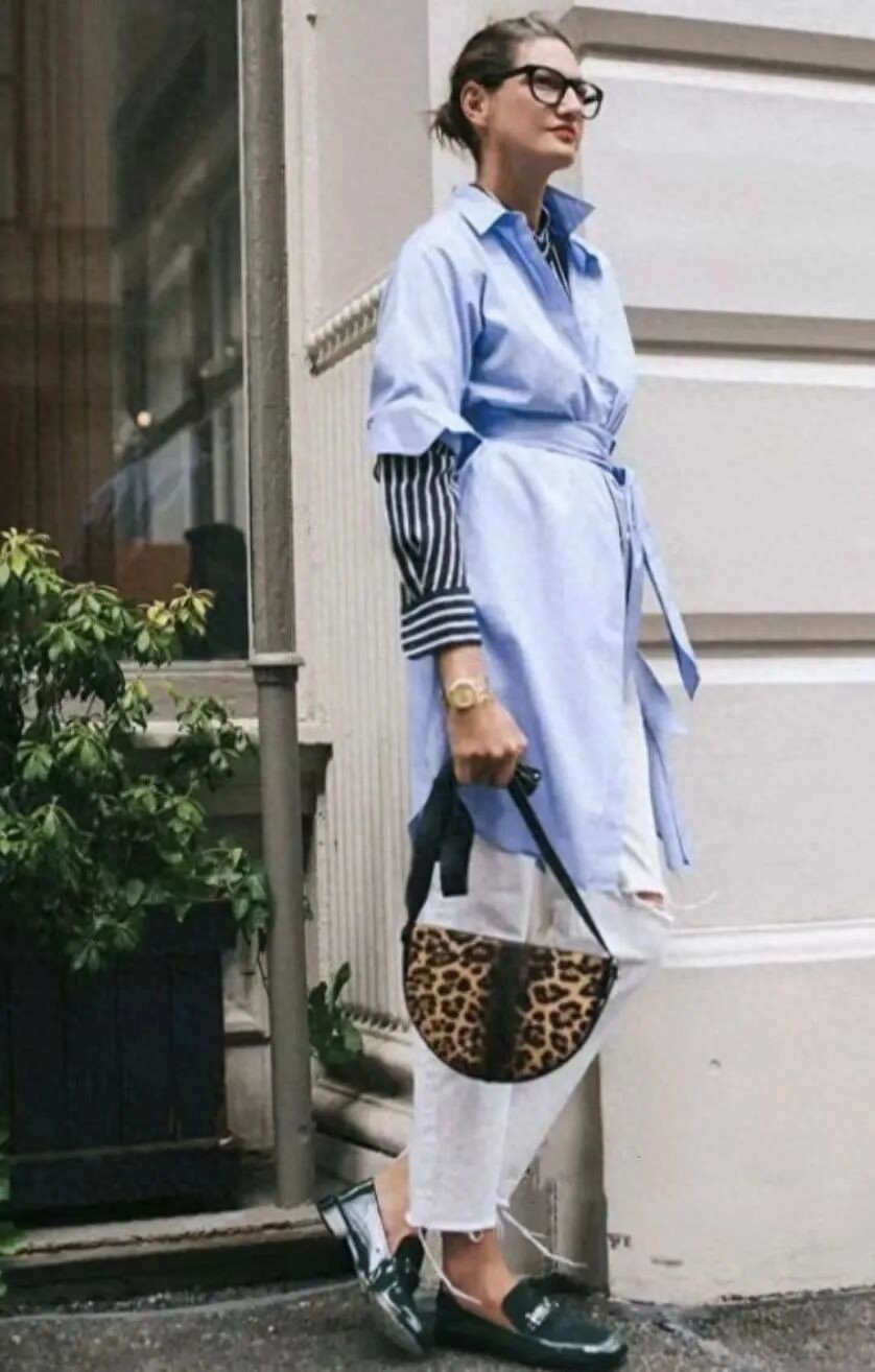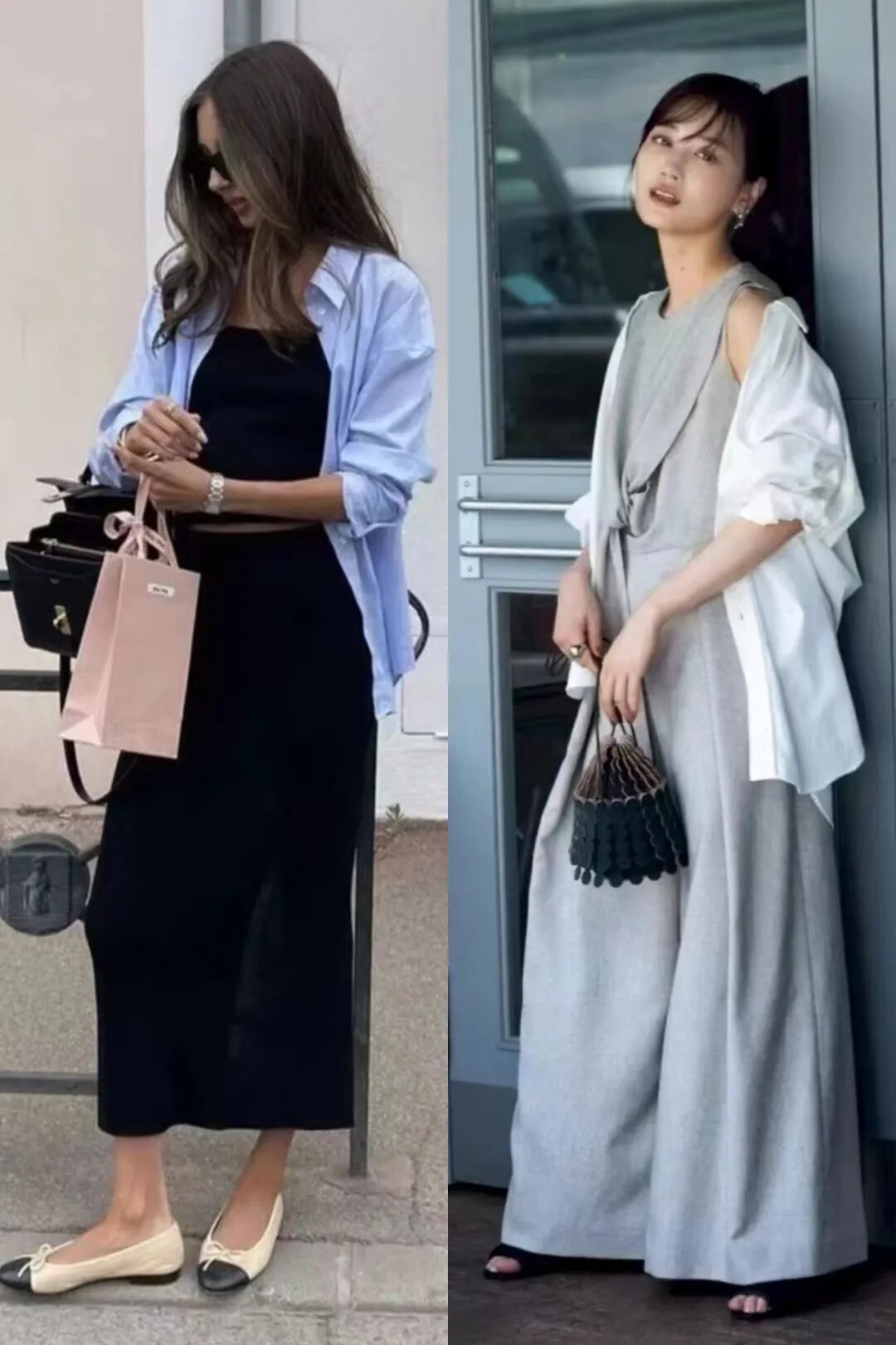 初秋最不費力的疊穿思路,來自”連衣裙+襯衫“。