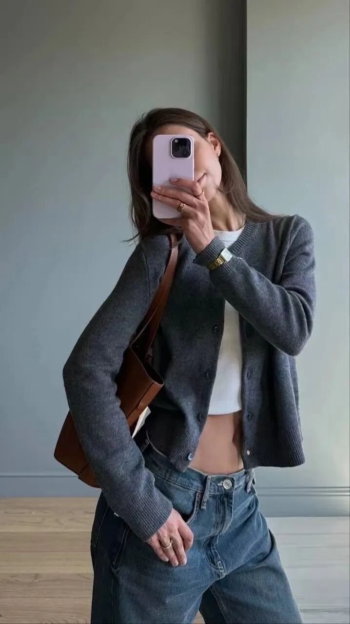 針織開衫也是秋天衣櫥的必備,選擇溫柔親膚的羊絨針織小開衫,既可以單穿,也適合簡單的疊穿。
