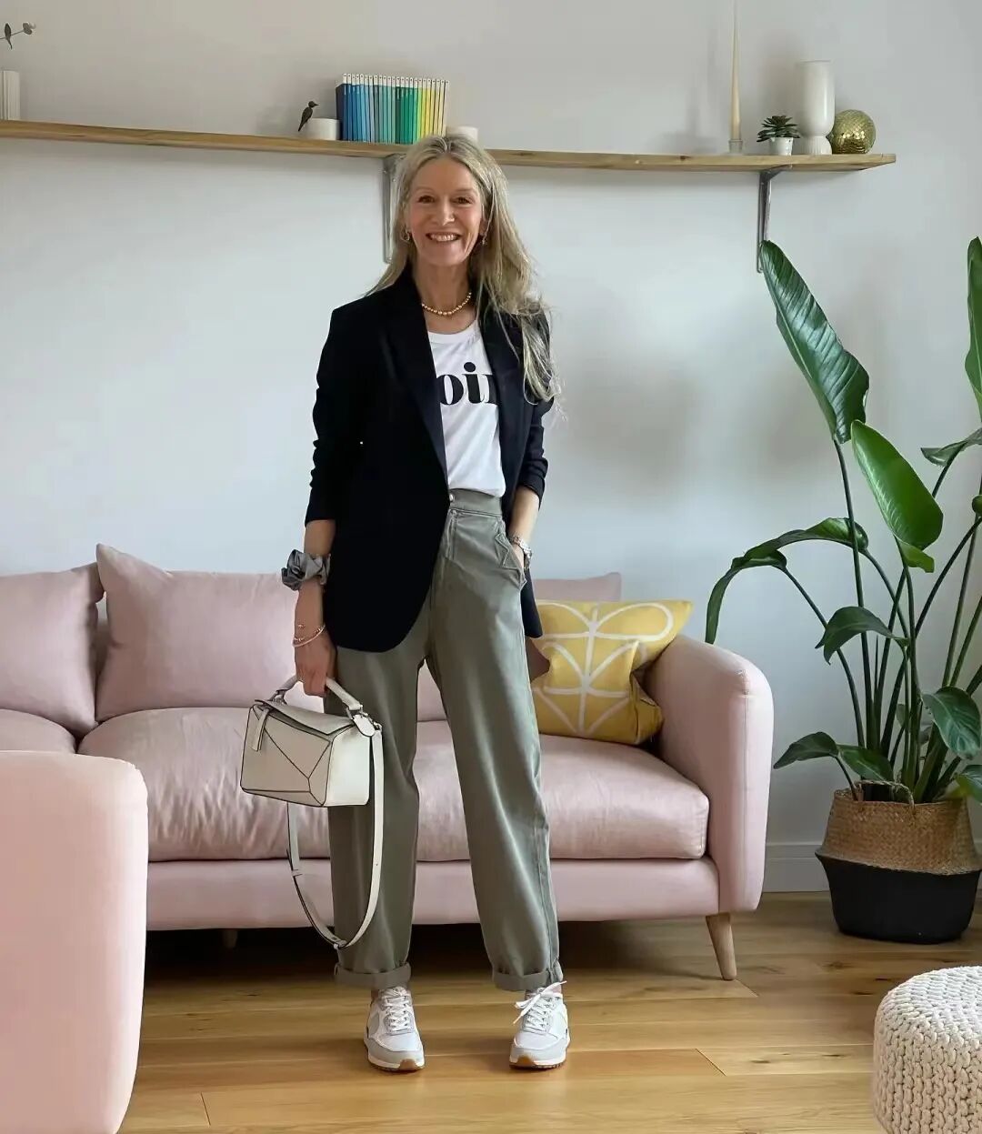 T恤和西裝疊穿還非常減齡,無論什么年齡的女性,秋天都可以通過這樣的疊穿來表達自己的風格。