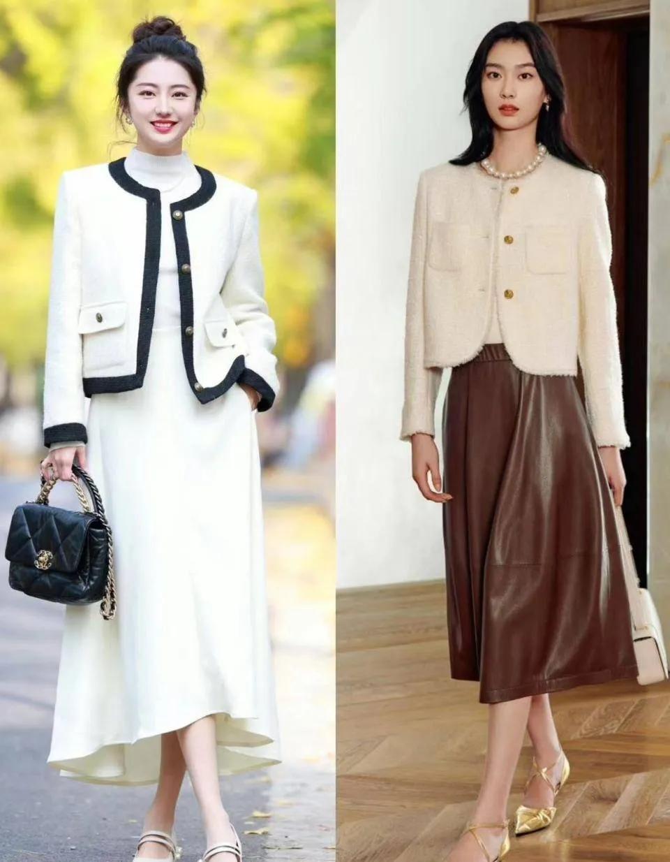 “小香風+黑色半身裙”的搭配在今年秋天大火,因其融合了精致與經典,展現出優雅氣質,以下是具體介紹: