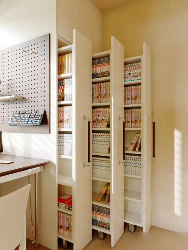 再比如租房黨最愁的“沒有書房”,我去年租房時試過把抽拉書柜塞在沙發和墻之間的縫隙里,占地還沒1㎡,拉出來是張能放15.6寸電腦的小書桌,寫方案、改論文剛好;收回去能放兩百本書,甚至還能在后面藏我家貓的玩具箱(別問,貓就愛鉆這種“隱蔽空間”)。比買個大書桌強多了,畢竟租房的每一寸空間,都要“花在刀刃上”。