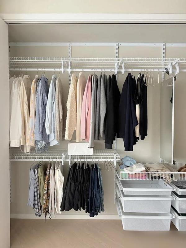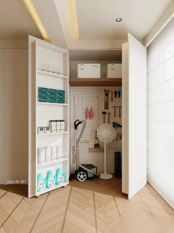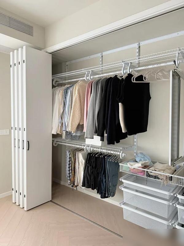 就說我朋友小夏,去年咬咬牙買了套58平的學區房,裝修時先打了組傳統衣柜,剛住三個月就崩潰:“我170cm的羽絨服塞不進上層隔板,只能團成球堆在下層抽屜;夏天的吊帶衫掛在大格子里,空出來的地方能放兩個貓砂盆。”后來她換成可調節隔板的衣柜,把隔板往上調兩格放羽絨服,往下調三格掛吊帶,瞬間多出三分之一空間,甚至還能加個小格子放她收集的星黛露——你看,柜子不是“擺那好看的”,得跟著你的生活習慣“變形狀”。
