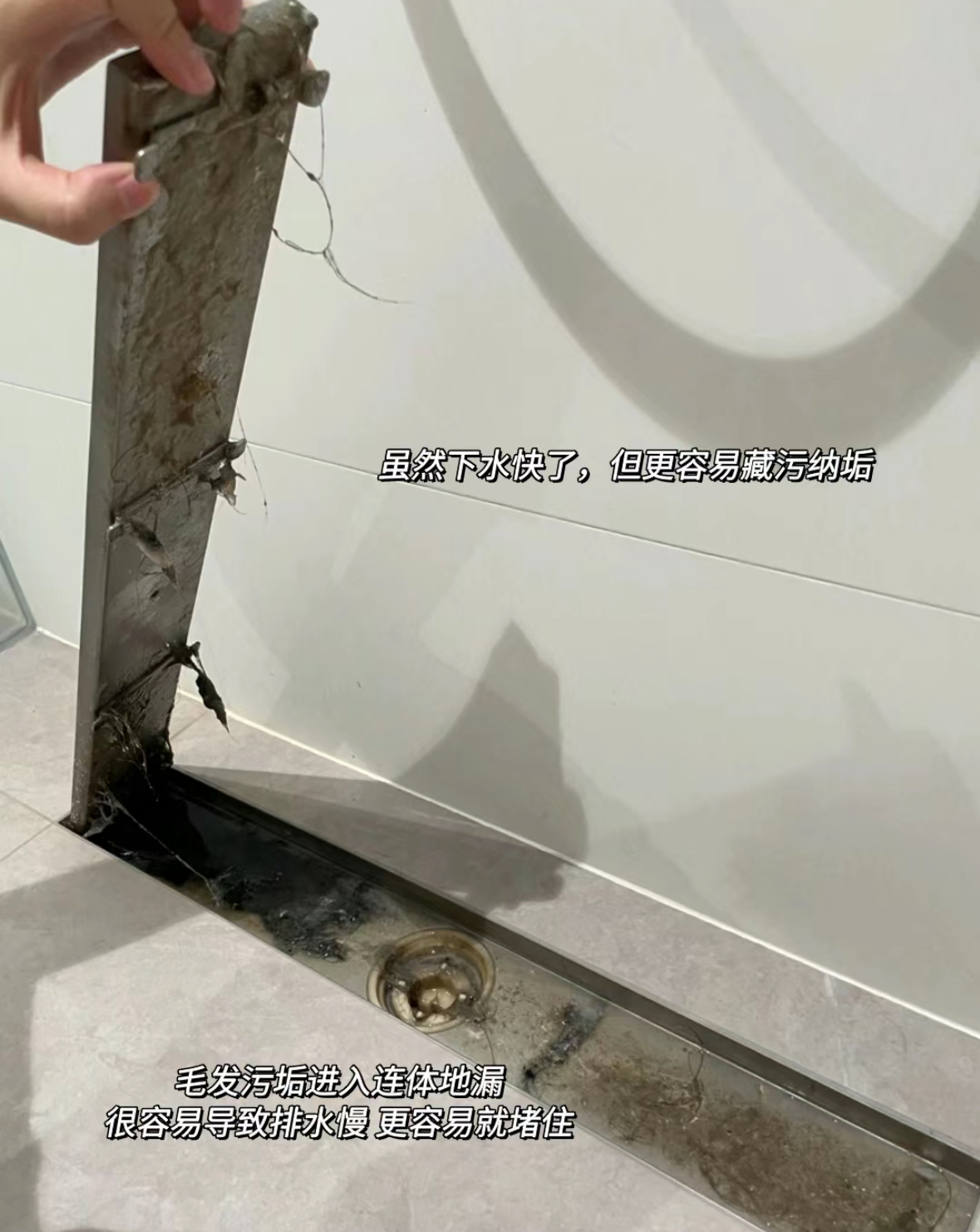 長條形隱形地漏易使人產(chǎn)生下水面積更大、排水速度更快的錯覺。然而,待安裝使用后,人們才會發(fā)覺諸多問題。且不說前期定位與預(yù)埋工作難度較大,單是人工費用就頗為高昂。最令人困擾的是后期清理難題,這無疑給自己徒增了一堆麻煩。