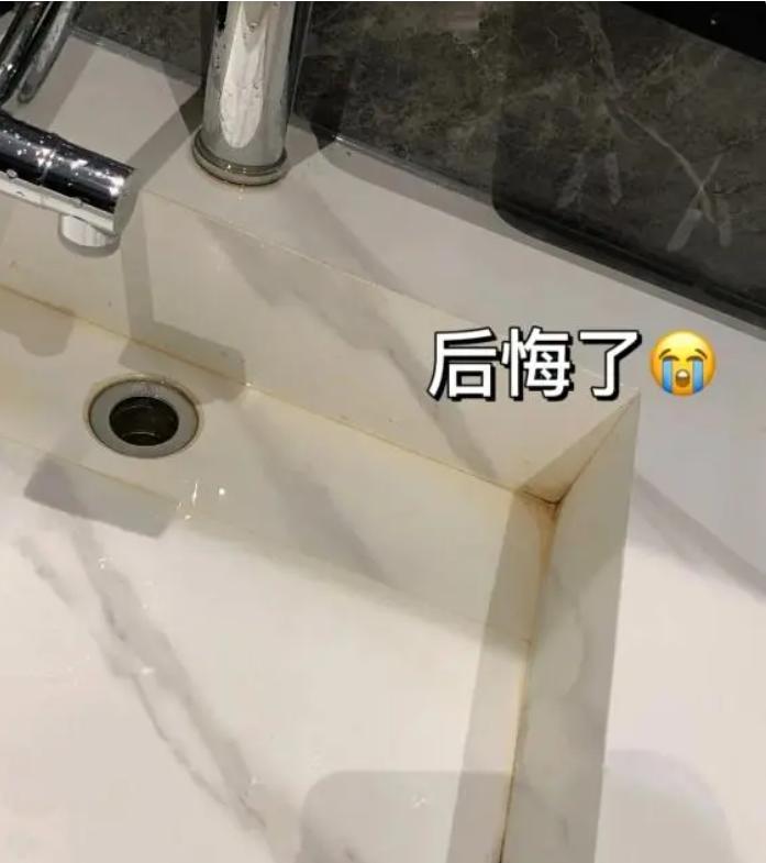 長此以往,臺盆內(nèi)的積水不僅會滋生細(xì)菌,還會形成水垢,甚至催生霉菌。偏偏這巖板一體盆呈規(guī)整的四方形,其四個直角之處成了藏污納垢的“重災(zāi)區(qū)”,清理起來著實困難。