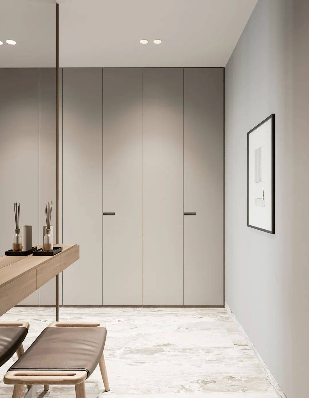 伴隨極簡風(fēng)裝修的盛行,一門到頂衣柜的設(shè)計如同一顆璀璨新星,驟然在網(wǎng)絡(luò)上爆火。誠然,無論是在空間利用層面,還是在美觀程度方面,它相較于傳統(tǒng)柜子都頗具優(yōu)勢。那柜子與天花板銜接得嚴(yán)絲合縫,不存在任何衛(wèi)生死角。
