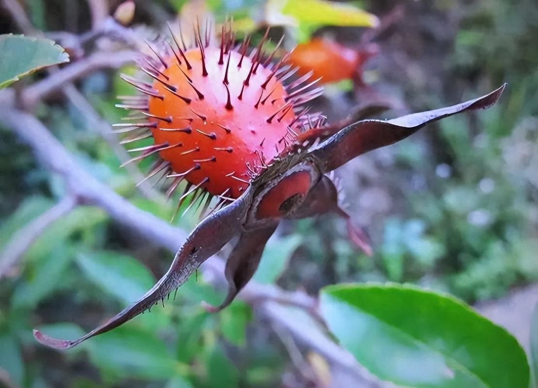 金櫻子它是農村一種帶刺植物上面結的果實,到了秋分過后,它的果實就會由青色變成橙紅色,就標志著成熟了,吃起來也帶有甜味了。