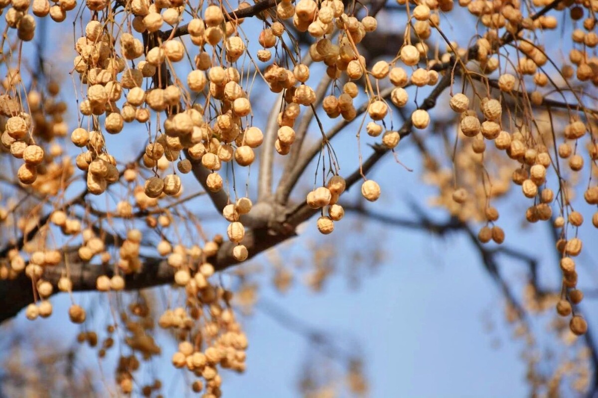 苦楝樹在農村很常見,房前屋后都可能有,它的果實到了秋天成熟后變成了黃色,一旦葉子掉落后,非常的顯眼。它是有毒的,不能吃,但是它的用處也不能忽視。