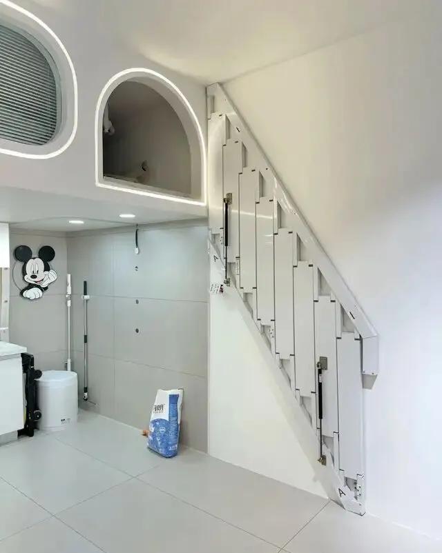 并且,為了不占地方,還做了折疊的樓梯,不用時貼墻收納,超級省地方!