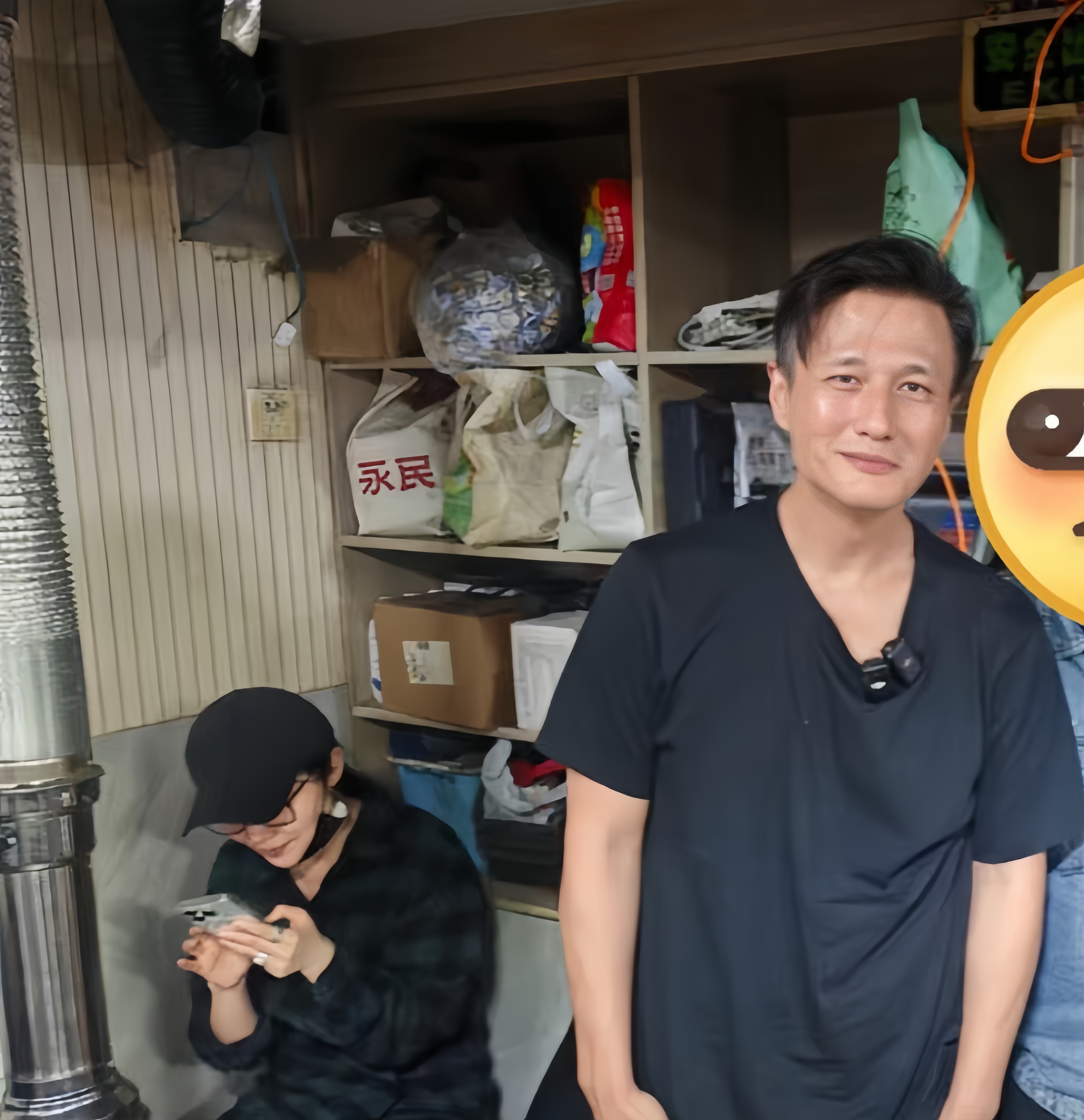 吃完燒烤之后,尹子維被民眾們邀請一起拍攝合照,徐冬冬則在一旁坐著看手機。