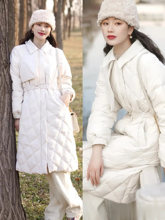 并且像這種白色的羽絨服顏色是很清爽的,如果你皮膚有些暗沉或者是有一些瑕疵,你都可以去嘗試這種色彩。