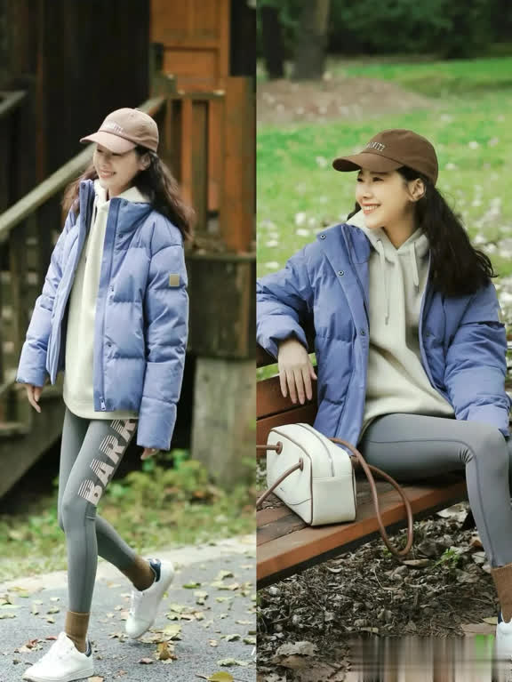 淺藍色的羽絨服也超適合黃黑皮,搭配上之后對皮膚的提亮效果很不錯喲。