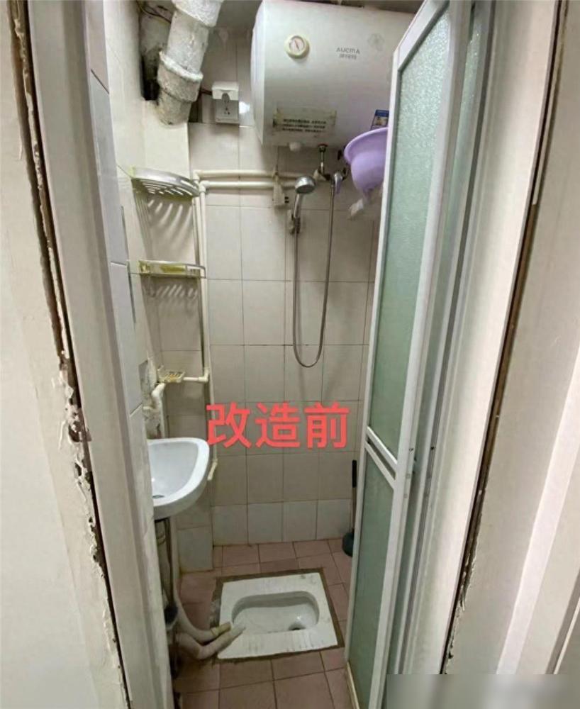 這樣就會導致整個衛生間經常在使用中擁擠,因此他特意保留了蹲便的馬桶設計,讓洗澡成為一個獨立的區域沒有關系,只需要放在門口不擋后面就能夠。