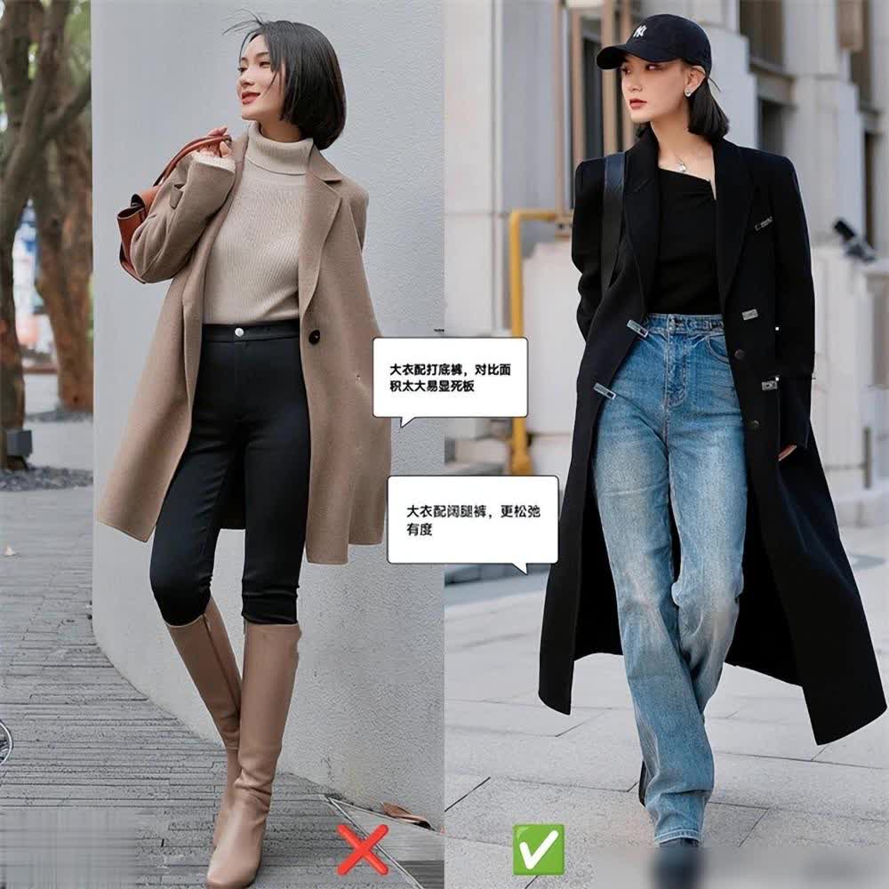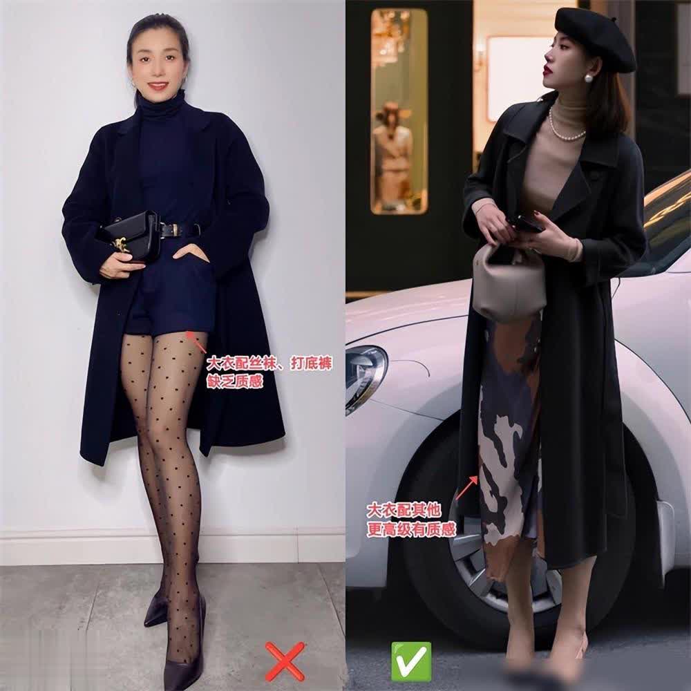 ①大衣搭配絲襪和打底褲,顯得廉價不得體