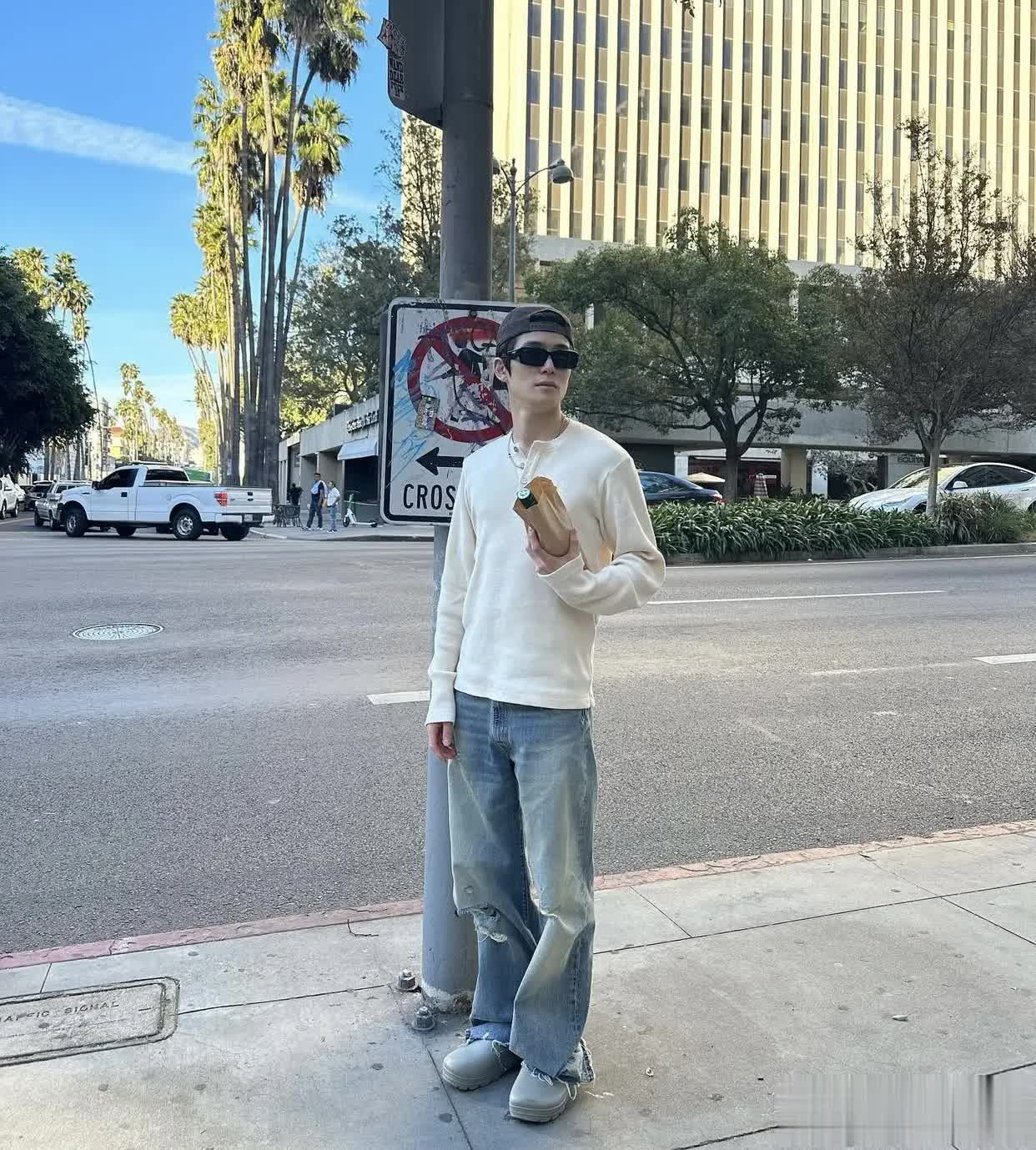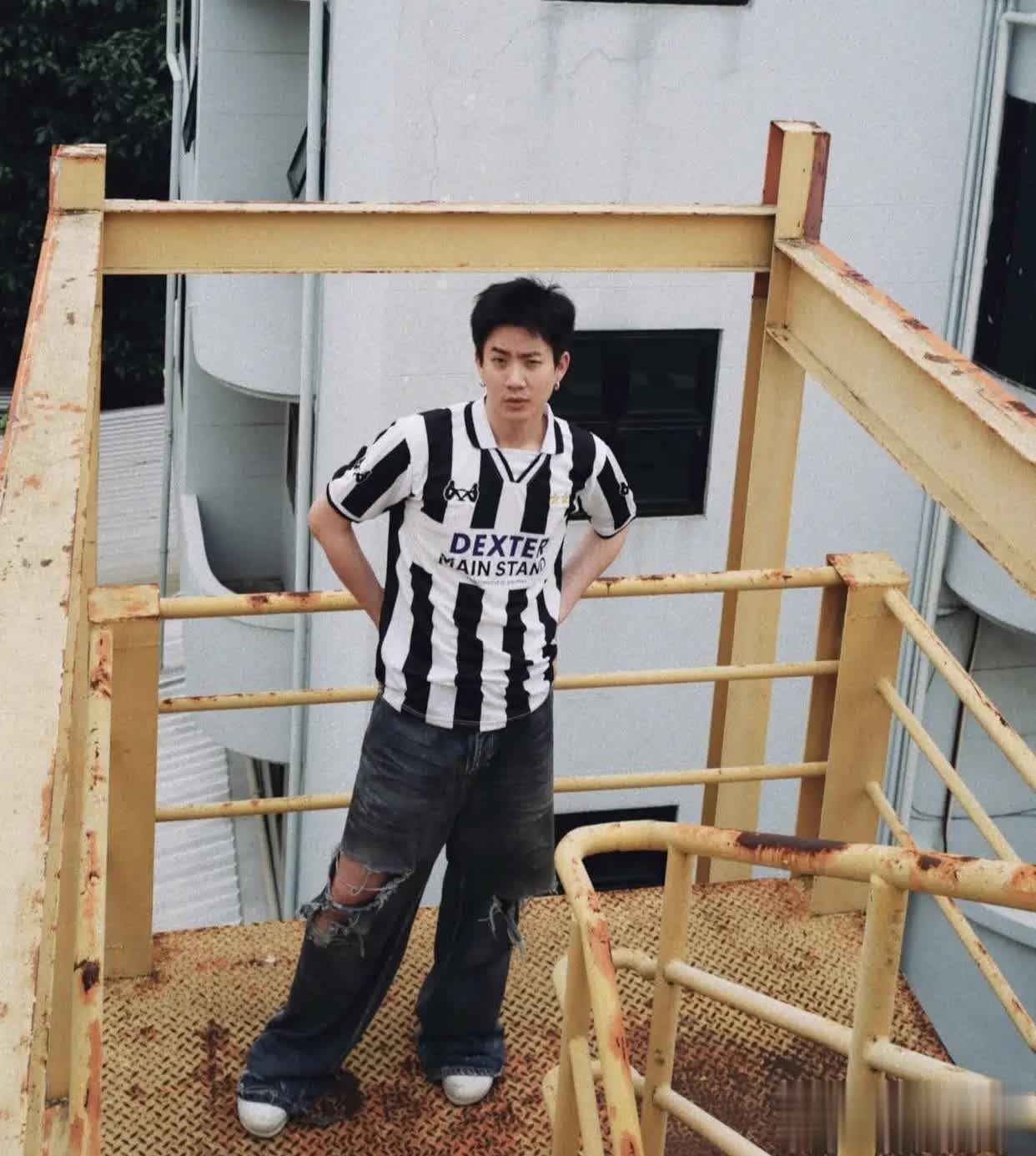 很多男生在夏天喜歡穿球衣,想要你的球衣look顯得有辨識度,可以看看他的選擇。這樣搭配破洞牛仔褲,會讓你的穿搭水平提高不止一個level,哪怕都是寬松搭寬松,因為破洞牛仔褲特別有看點,所以視覺上會往下。