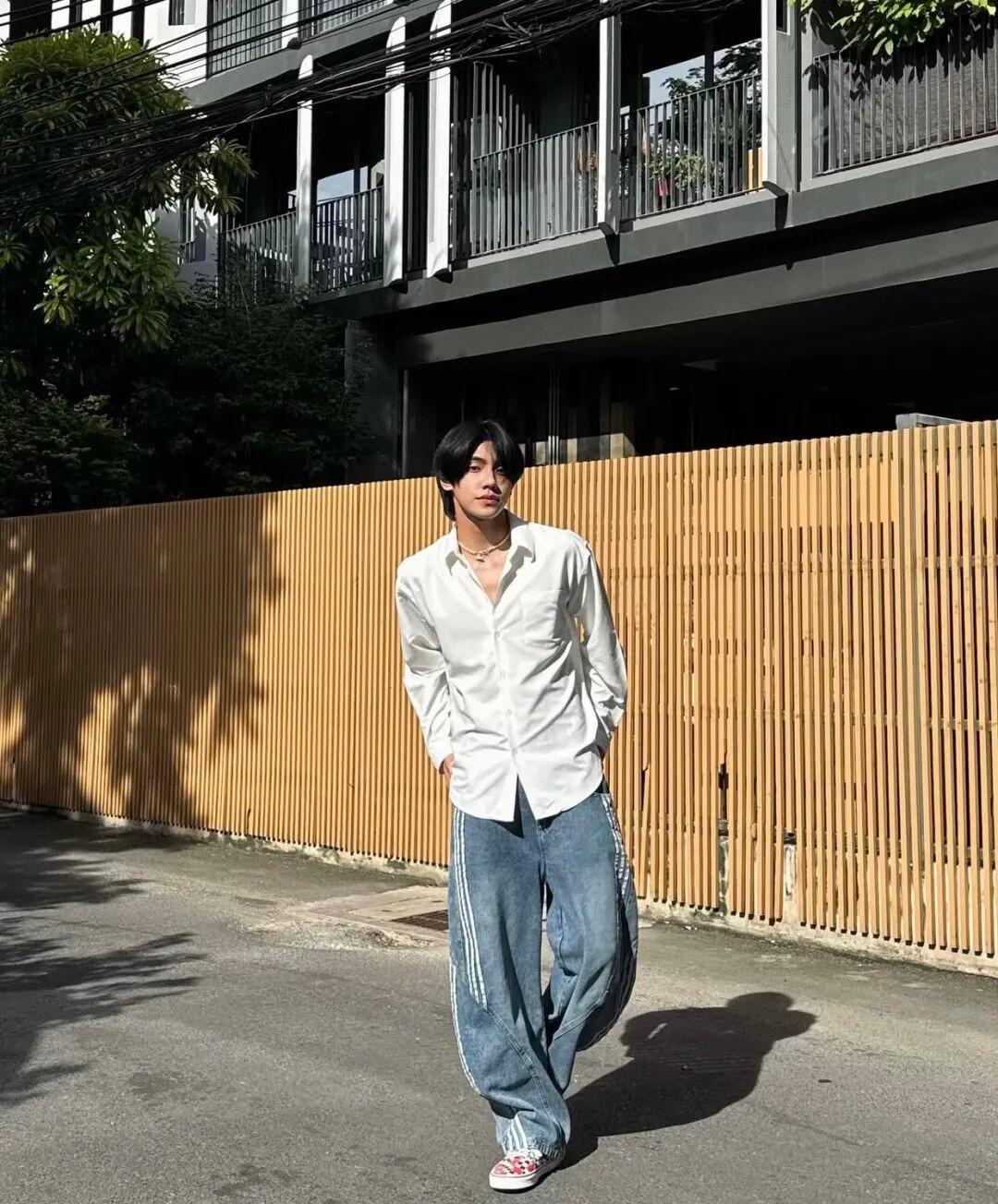 這次出發去華倫天奴的隊伍中,有一張年輕的面孔引起了我的注意。他叫Peemwasu,是一個泰國男歌手,穿衣服還挺帥氣。而且,他的風格是自帶一點酷感,特別讓人想模仿。