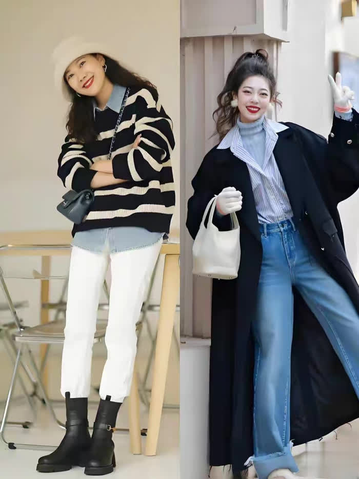 當然啦,也可以選擇不一樣的穿搭風格,比如說你用一件比較保暖舒適的黑色大衣疊加條紋襯衫,內搭半高領的灰色打底衫,加上一條牛仔直筒褲,這樣的穿衣打扮保暖舒適,比較適合冬季的時候穿搭,或者是說你現在是在北方城市,天氣已經降溫的很厲害,選擇這一身打扮也完全沒任何問題。