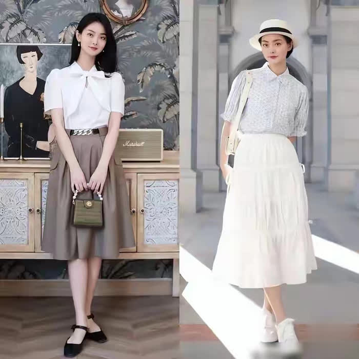 當然啦,我們還有就是用襯衫來搭配上半身裙,比如下面這種小眾的襯衫上衣來搭配上半身裙,給人的感覺會更顯年輕,更有活力。