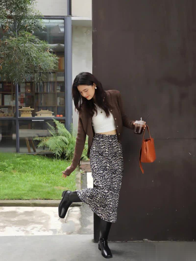 不要讓下半身的單品蓋過(guò)踝跟靴的靴筒,盡量讓裙擺、褲腿和靴子之間露出一小截腿上的皮膚,肌膚顏色展現(xiàn)出來(lái),能打造很自然的分割線,在留白中間的對(duì)比下,會(huì)顯得腿更細(xì)、更修長(zhǎng)哦。